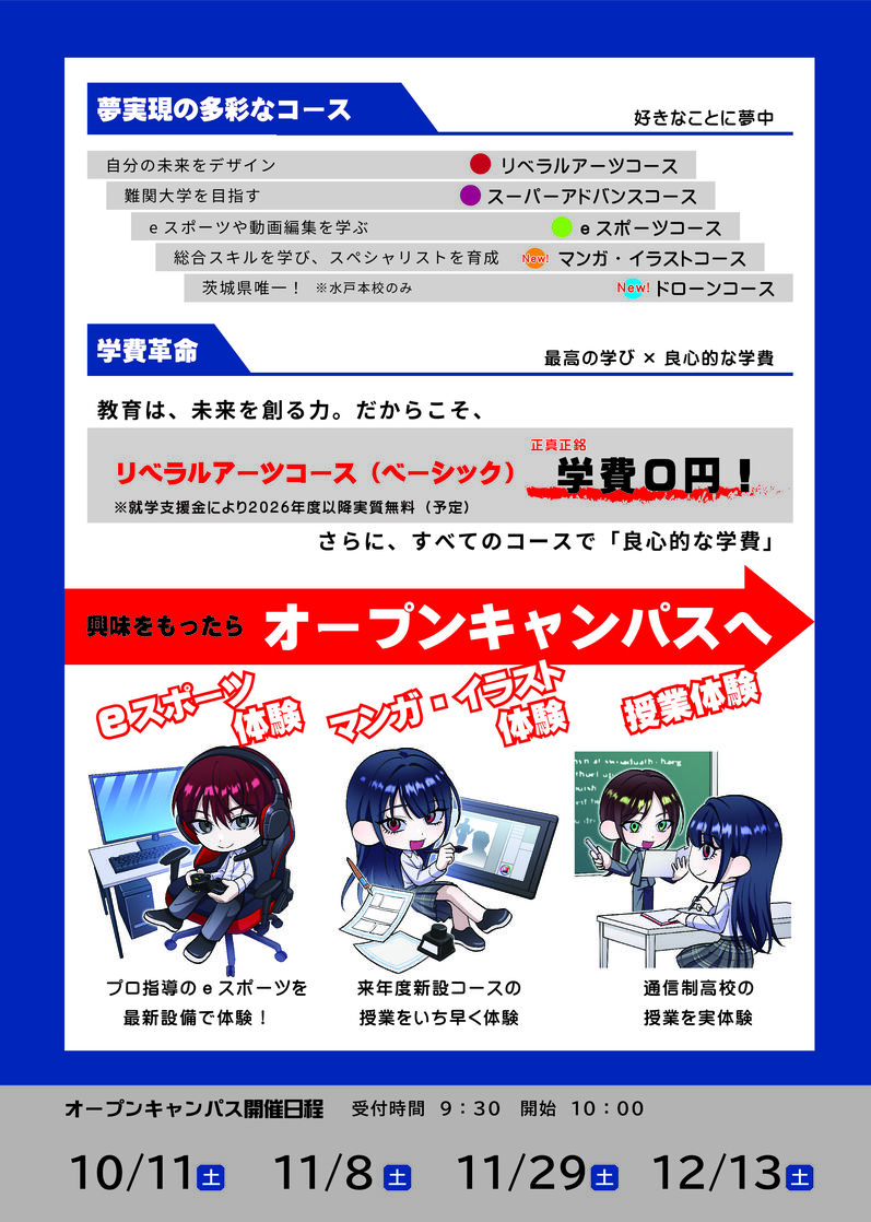 11/29(土)10:00~、水戸本校オープンキャンパスを開催します。