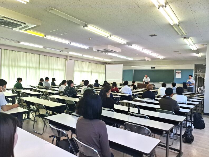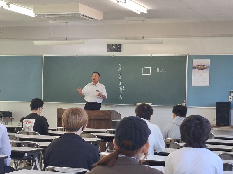 本日、2025年度後期始業式が行われました。副校長補佐からは、コロナ禍のSNS関係の出来事や人間万事塞翁が馬ということわざを用い、「人間だれしも心の持ち方、置き方、考え方しだいでいかようにも変わる。人生いつ何時、何が起こるか分からないからこそ面白い」というお話を頂きました。生徒の皆さんには、この言葉を胸に、心新たに後期のスタートを切ってほしいと思います。