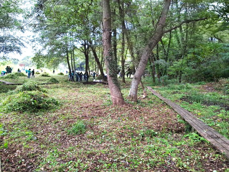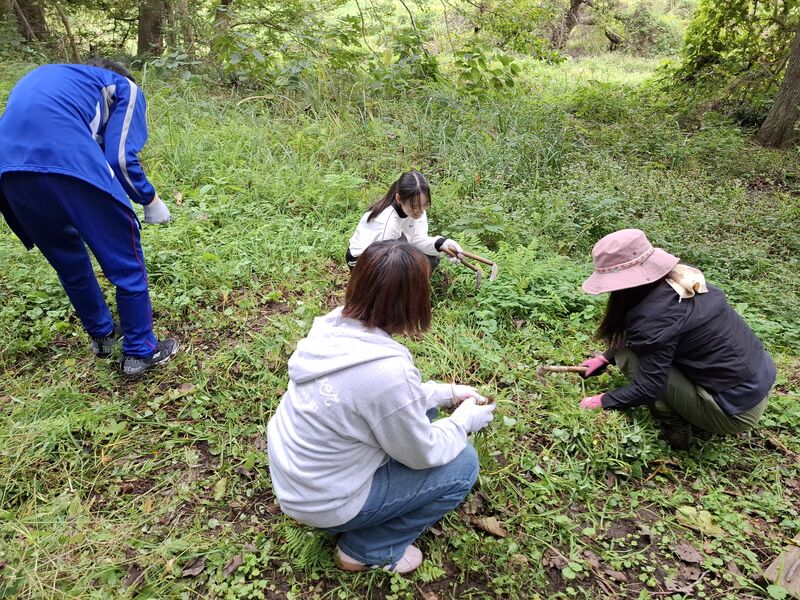 英宏中学校科学部主催の「英宏の泉」環境整備活動を行いました。生徒たちは、膝丈まである草々を一生懸命きれいに刈り取りました。英宏の泉はホタルを鑑賞することができる希少な場所です。今回の整備活動では、カエルやバッタ、サワガニなど様々な生物を見ることができました。協力してくれた生徒の皆さん、ありがとうございました。