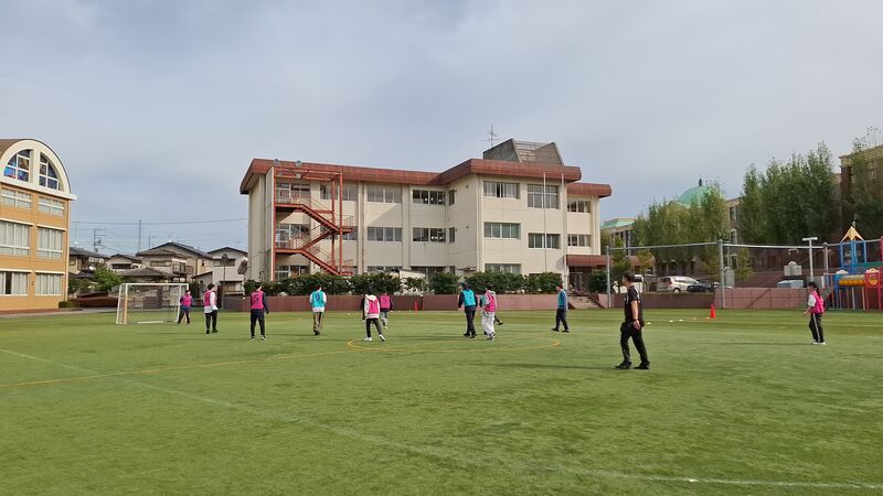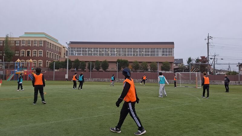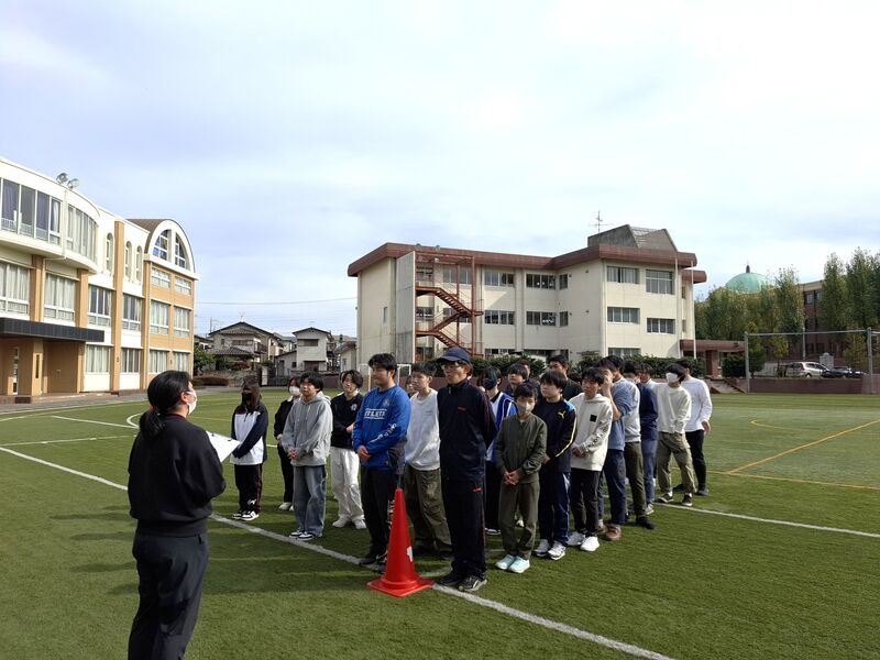 多くの生徒が集まり、準備運動をしっかりと行い、サッカーとリレーを行いました。