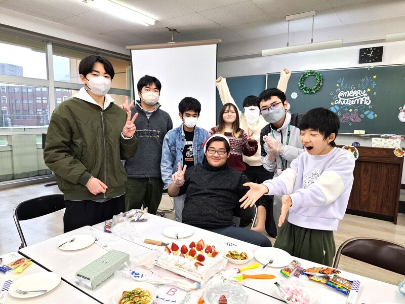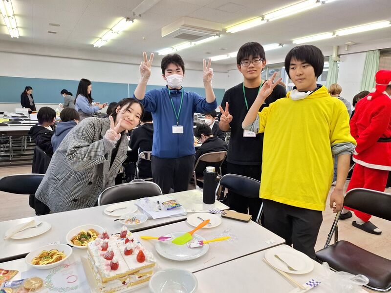 1・2・3期生合同で今年最後の行事、クリスマス会を開催しました。班ごとに個性あふれるケーキを作り、先生方が作ったたこ焼きとともに美味しく味わいました。その後、ビンゴ大会&プレゼント交換を行い、会場は大いに盛り上がりました。副校長補佐が扮するサンタクロースが登場するなどのサプライズもあり、楽しいクリスマスイブになりました。