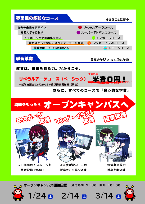 2/14(土)10:00~、水戸本校オープンキャンパスを開催します。