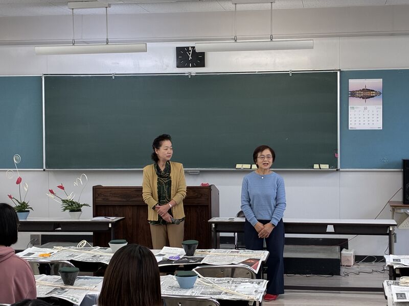 本日は、公益財団法人いばらき文化振興財団、小原流の中野様、広山流の大内様をお招きし、華道講座を実施しました。