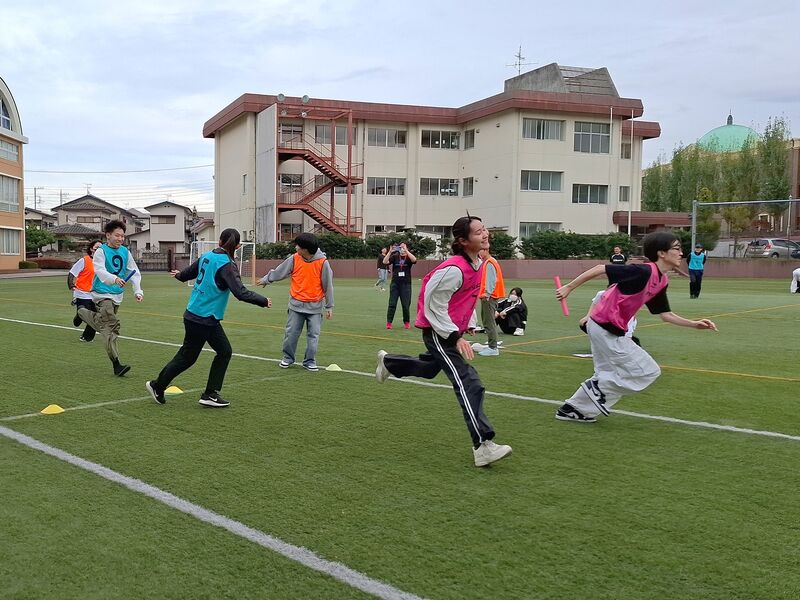 多くの生徒が集まり、準備運動をしっかりと行い、サッカーとリレーを行いました。