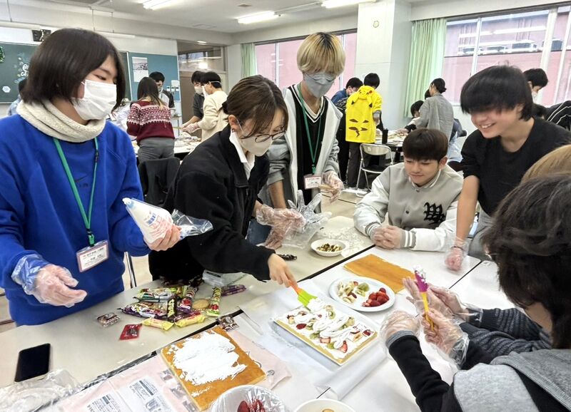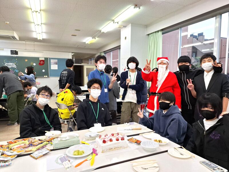 1・2・3期生合同で今年最後の行事、クリスマス会を開催しました。班ごとに個性あふれるケーキを作り、先生方が作ったたこ焼きとともに美味しく味わいました。その後、ビンゴ大会&プレゼント交換を行い、会場は大いに盛り上がりました。副校長補佐が扮するサンタクロースが登場するなどのサプライズもあり、楽しいクリスマスイブになりました。